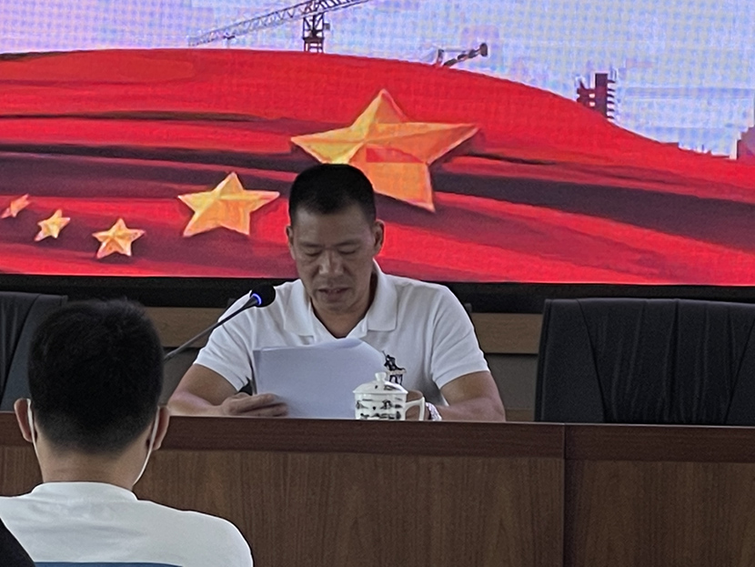 分管安全副總吳韶斌向大家宣貫《關(guān)于開(kāi)展2022年市區(qū)建筑施工領(lǐng)域“安全生產(chǎn)月”活動(dòng)的通知》等文件精神,將公司級(jí)“安全生產(chǎn)月”活動(dòng)方案進(jìn)行交底,并對(duì)各項(xiàng)目“安全生產(chǎn)月”活動(dòng)開(kāi)展作出指示及要求。
