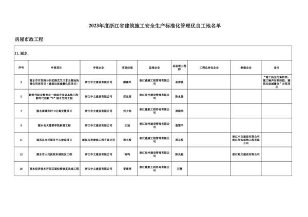 浙江中立建設(shè)有限公司在2023年度“建筑施工安全生產(chǎn)標(biāo)準(zhǔn)化管理優(yōu)良工地”評(píng)選活動(dòng)中,獲得了豐碩成果。1個(gè)項(xiàng)目榮獲全國建設(shè)工程項(xiàng)目施工工地安全生產(chǎn)標(biāo)準(zhǔn)化學(xué)習(xí)交流項(xiàng)目;7個(gè)項(xiàng)目榮獲浙江省建筑施工安全生產(chǎn)標(biāo)準(zhǔn)化管理優(yōu)良工地,其中1個(gè)項(xiàng)目被評(píng)為“建筑垃圾減量化”示范項(xiàng)目;16個(gè)項(xiàng)目榮獲麗水市建筑施工安全生產(chǎn)標(biāo)準(zhǔn)化管理優(yōu)良工地。