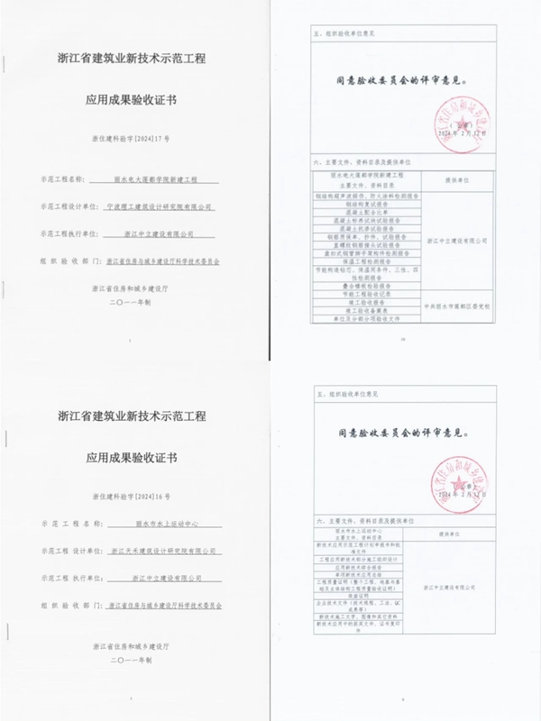 近日,中立建設(shè)承建的“麗水電大蓮都學(xué)院新建工程”和“麗水市水上運(yùn)動(dòng)中心”,通過浙江省住房和城鄉(xiāng)建設(shè)廳科學(xué)技術(shù)委員會組織的驗(yàn)收組驗(yàn)收,兩個(gè)項(xiàng)目獲“浙江省建筑業(yè)新技術(shù)應(yīng)用示范工程”。