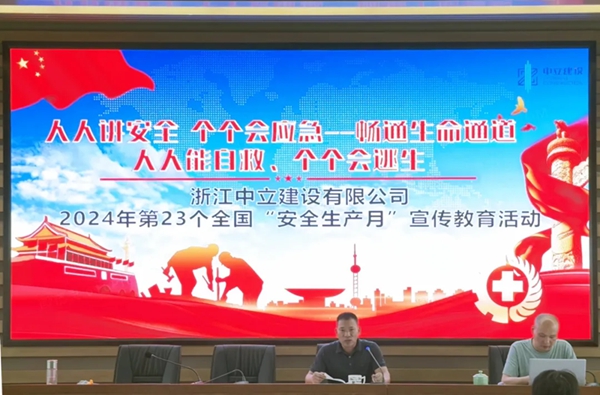 6月7日,浙江中立建設(shè)有限公司召開2024年第二季度安全生產(chǎn)會議暨“安全生產(chǎn)月”活動啟動部署,分管安全副總吳韶斌、安全部全體人員、現(xiàn)場安全管理人員等40余人參會。