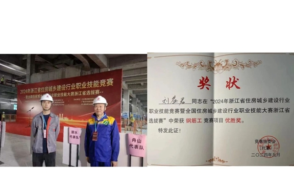 公司員工劉益君參加2024年浙江省住房城鄉(xiāng)建設(shè)行業(yè)職業(yè)技能競(jìng)賽暨全國(guó)住房城鄉(xiāng)建設(shè)行業(yè)職業(yè)技能大賽中,榮獲“鋼筋工競(jìng)賽項(xiàng)目?jī)?yōu)勝獎(jiǎng)”。