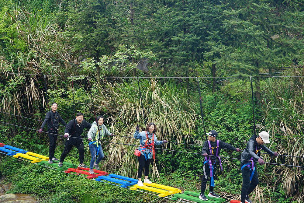 早上9點,在董事長和總經(jīng)理的帶領下,大家到達目的地,員工們便開始了拓展穿越活動,大家團結協(xié)作,挑戰(zhàn)自我,突破一關又一關的項目,最終成功到達終點,大家臉上都洋溢著自信笑容。